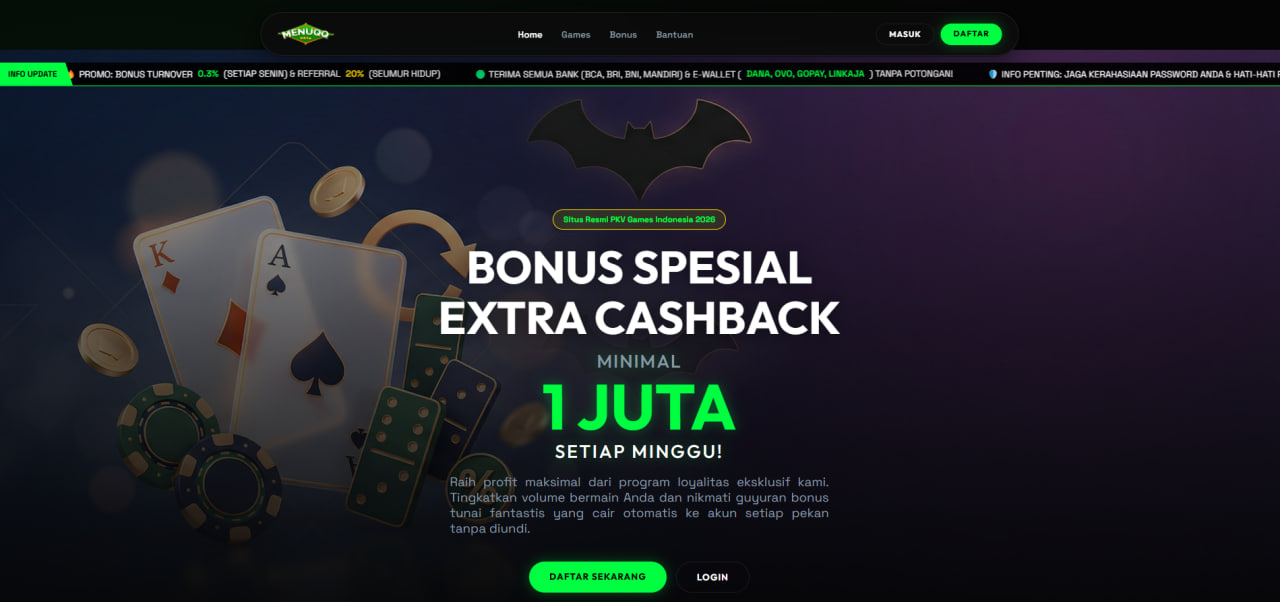 Menemukan wadah taruhan uang asli yang kredibel kini menjadi prioritas mutlak bagi pemain di indonesia, dan situs pkv resmi seperti menuqq hadir sebagai solusi utamanya. platform ini membuktikan diri sebagai tempat terbaik yang menyediakan akses lancar ke berbagai permainan kartu paling diminati saat ini. anda dapat langsung merasakan sensasi menjadi bandar di meja bandarqq atau menguji ketangkasan strategi dalam permainan dominoqq dengan sistem yang sangat adil. keamanan menjadi landasan utama kami, memastikan setiap putaran permainan bebas dari intervensi bot yang merugikan sehingga memberikan rasa nyaman maksimal bagi setiap member yang bergabung.